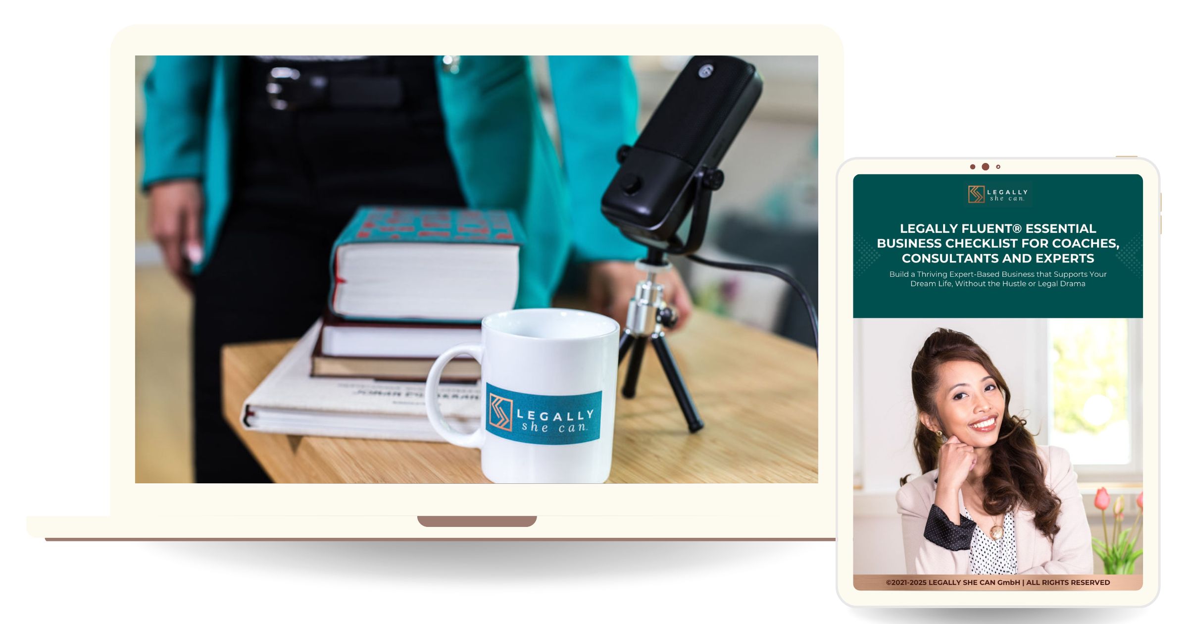 Legally She Can GmbH is a legal consultancy, not a law firm. Vena Verga-Danemar is a licensed lawyer turned legal and business strategist. When you interact with her through Legally She Can or any of our social media platforms, she is NOT acting as your lawyer, nor does this interaction establish a lawyer-client relationship. The information provided by Legally She Can and Vena Verga-Danemar is not legal advice, but strategic legal guidance designed to help coaches, experts and online business owners navigate compliance, protect their work, and operate with confidence. This is not intended to be attorney advertising.