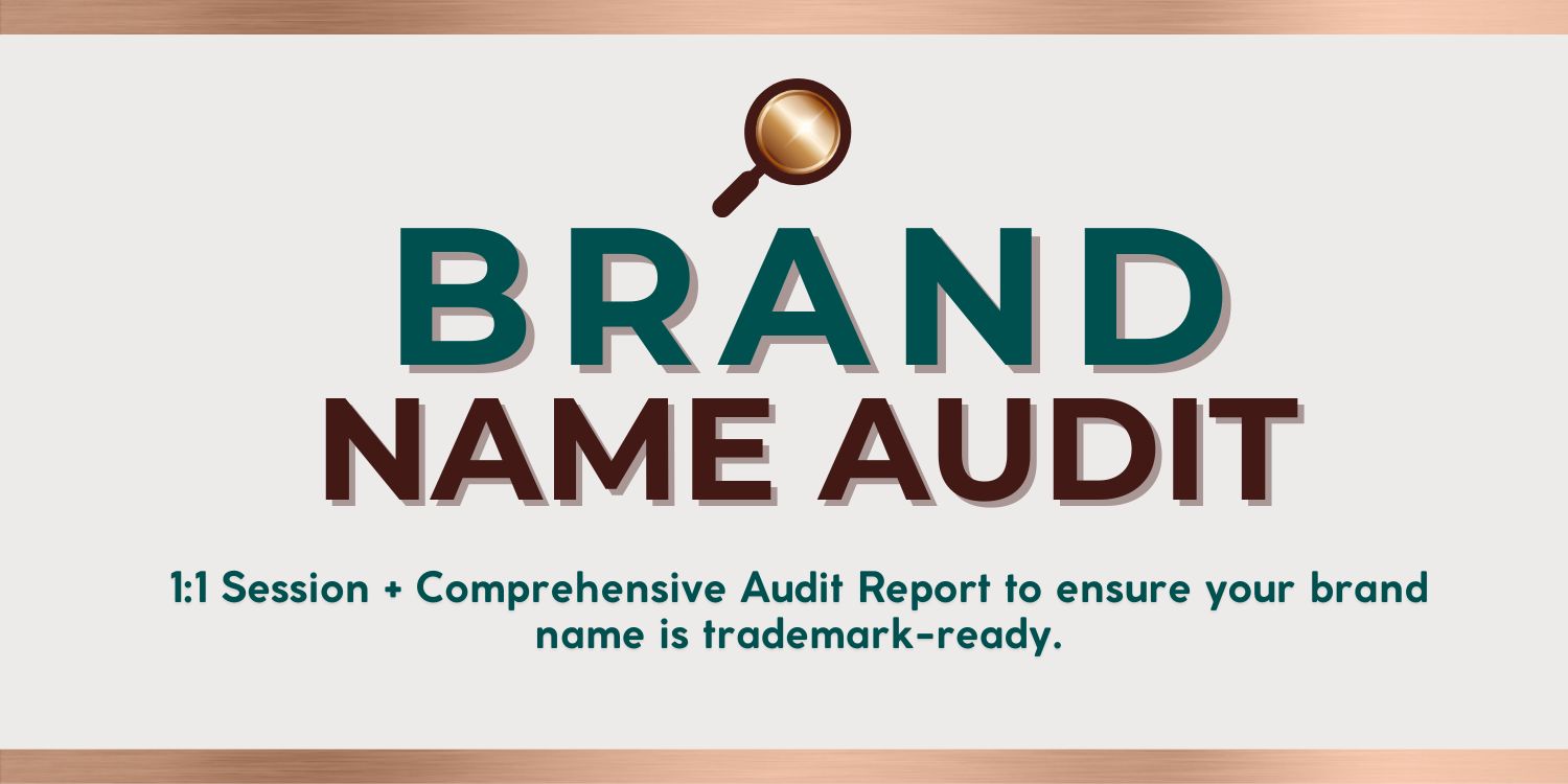 The Brand Name Audit gives you answers before it gets that far. In one private 1:1 session, you’ll know if your name can stand—and how to strengthen it so it’s ready for trademark filing.