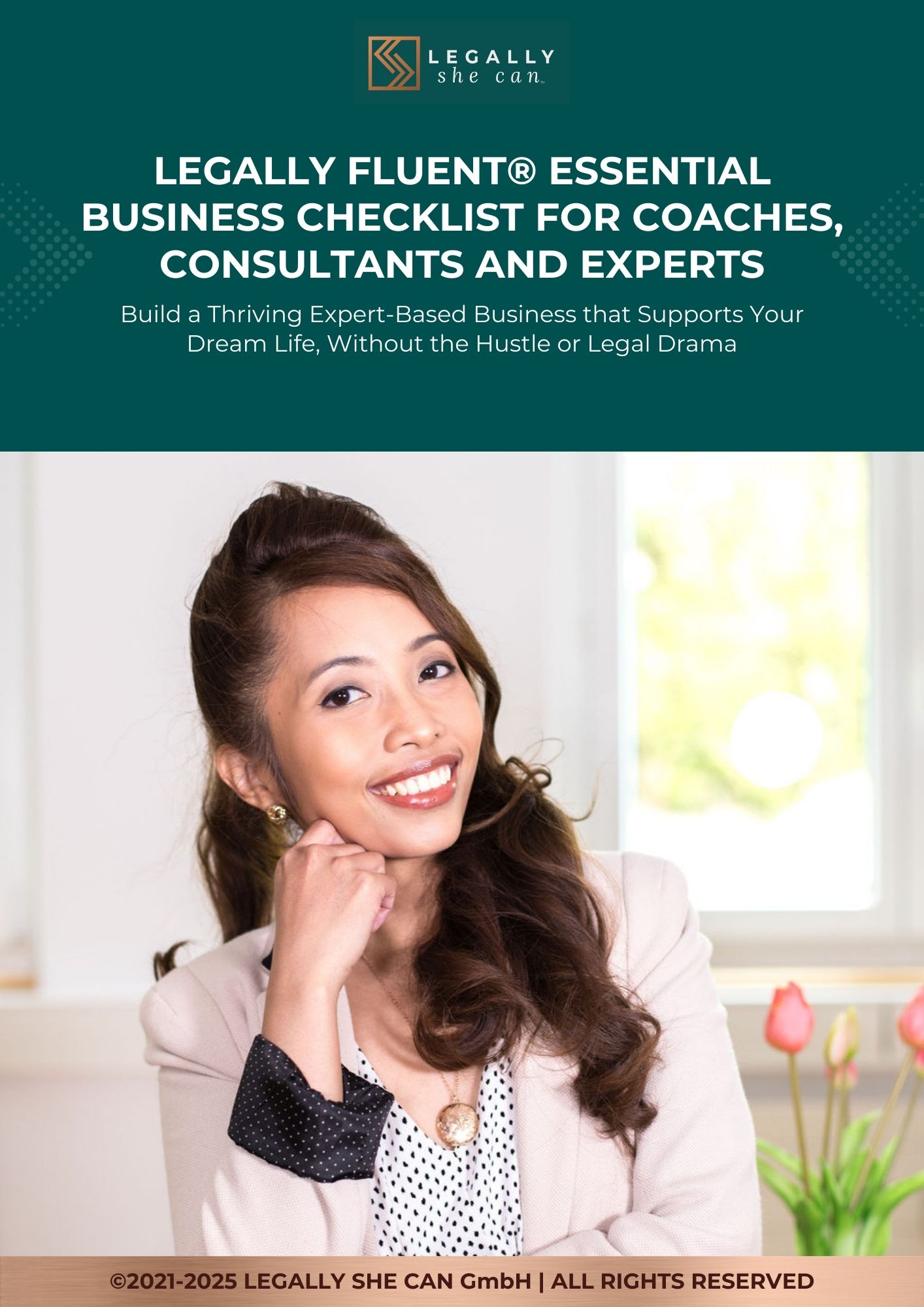 Legally She Can GmbH is a legal consultancy, not a law firm. Vena Verga-Danemar is a licensed lawyer turned legal and business strategist. When you interact with her through Legally She Can or any of our social media platforms, she is NOT acting as your lawyer, nor does this interaction establish a lawyer-client relationship. The information provided by Legally She Can and Vena Verga-Danemar is not legal advice, but strategic legal guidance designed to help coaches, experts and online business owners navigate compliance, protect their work, and operate with confidence. This is not intended to be attorney advertising.